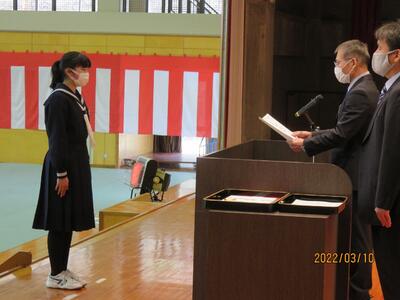 校長先生からの式辞のあと、各学年代表3名が2学期の振り返りと来年への抱負を発表しました。